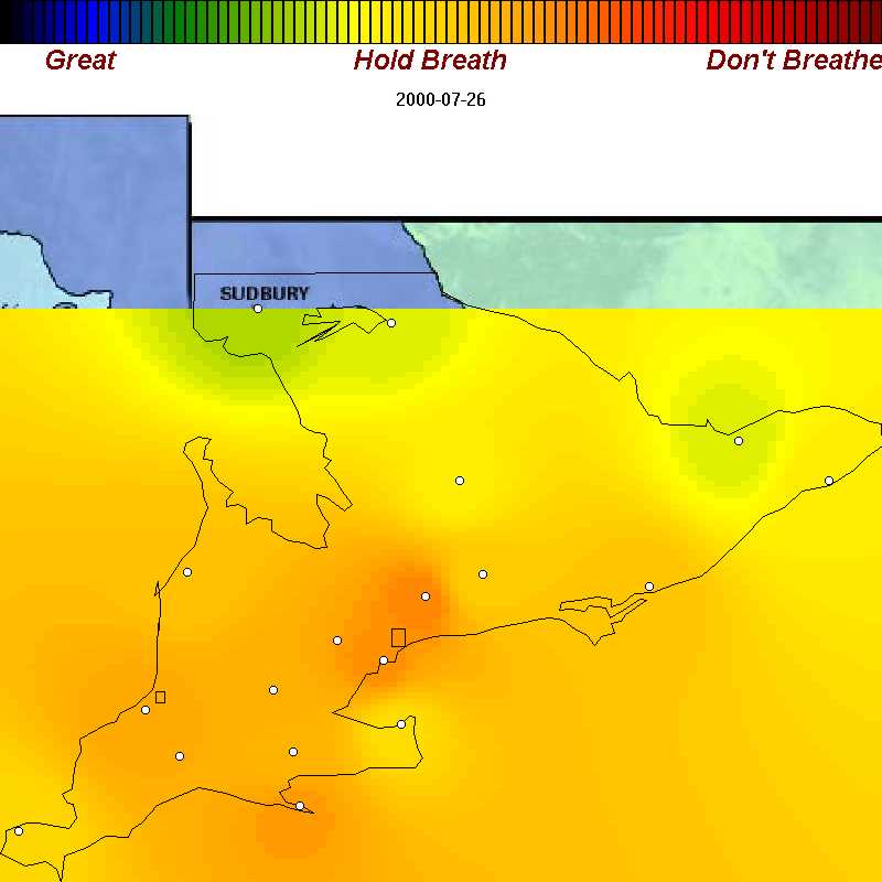 | July 15, 2000 | The way people expect it to be: poor air only in Greater Toronto area. This is the exception, not the rule |