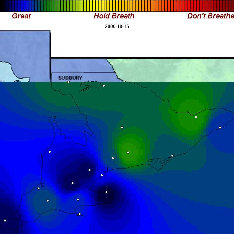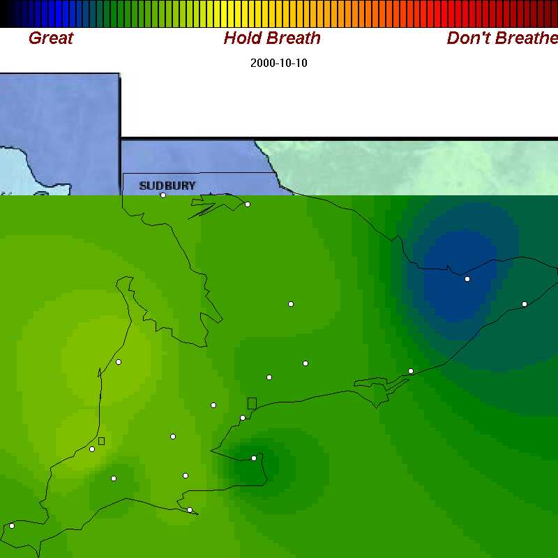 | June 10, 2000 | Bad air covers all of southern Ontario except for the eastern counties |