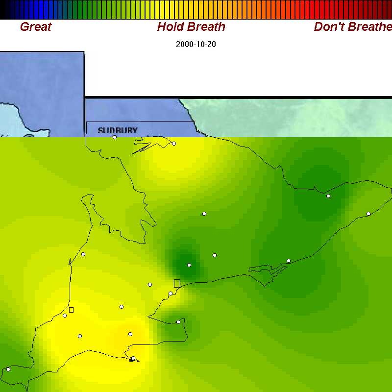 | Oct. 20, 2000 | A month into fall, poor air still hits SW Ont. from time to time. |